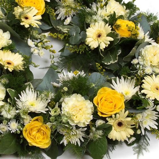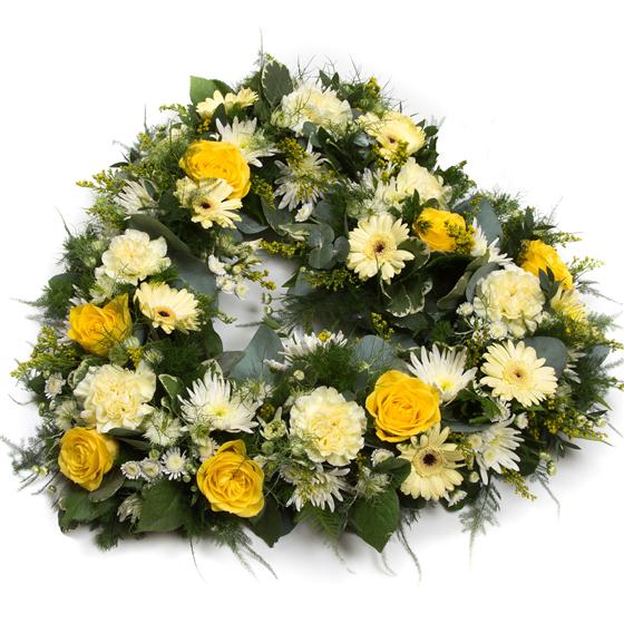Loose open heart in seasonal flowers. Can be made in any colour of your choice.