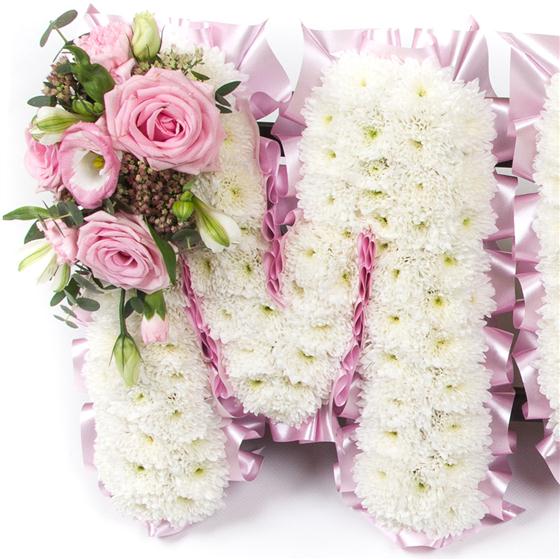 Chrysanthemum based MUM letters. This beautiful mum floral arrangement can be made with different coloured ribbon edge and cluster sprays on top to the picture. Please choose your ribbon edge and corrosponding cluster spray colour.