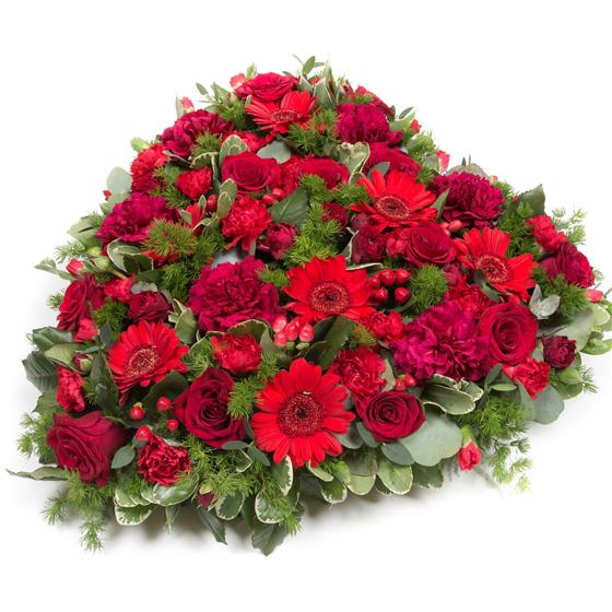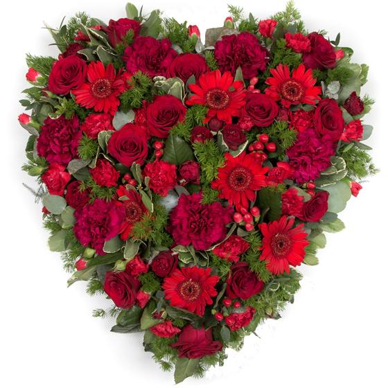 A stunning natural loose heart. In seasonal flowers and a varitey of green foliages.