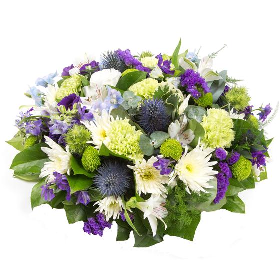 A seasonal selection of flowers and foliage arranged in a posy pad design. Please choose your colours.