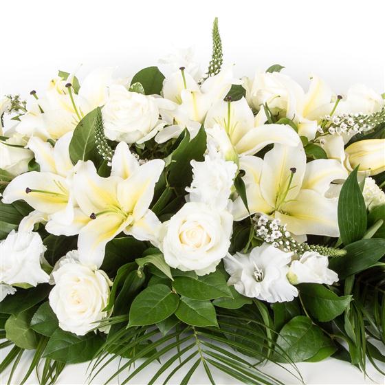 White lilies complemented with other white blooms, make this a perfect tribute to your loved one.